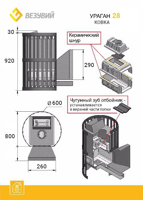В конструкции данной печи предусмотрен топочный тоннель, при помощи которого печь топится из соседнего помещения, смежного с парильным.