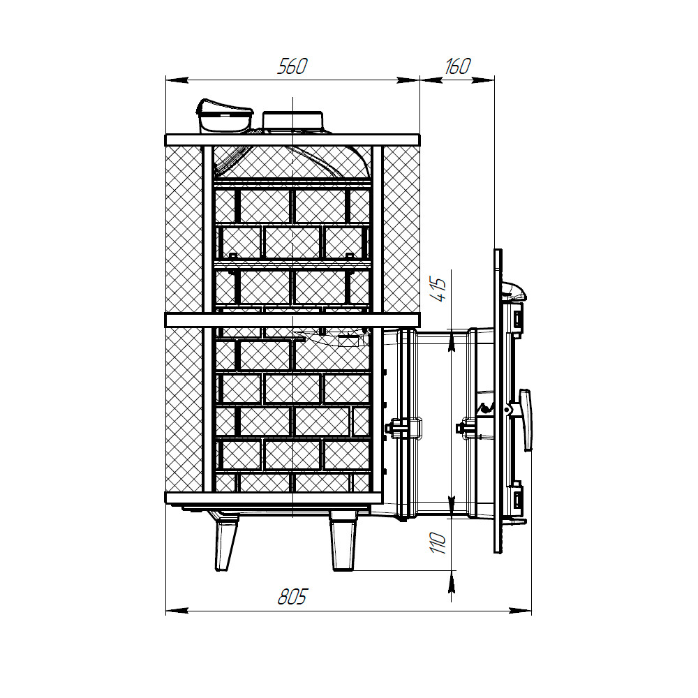 | Высота топочной дверцы | 660 мм |